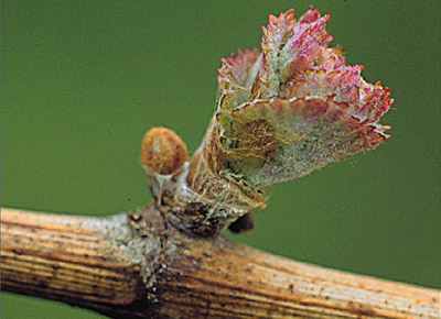 Wenn die Kirschblüten ihre weisse Pracht entfalten, erfolgt ganz unscheinbar der Austrieb der Rebentriebe aus den Knospen. Trieb und Blätter entfalten sich; nach wenigen Wochen sind die Gescheine - so heissen die Trauben vor der Blüte - sichtbar. Spätfröste sind bis zur Zeit der Eisheiligen Mitte Mai von den Winzern gefürchtet.
